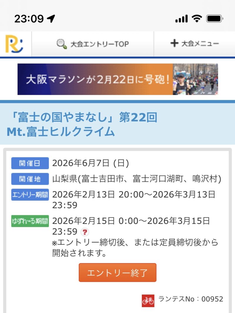 と、いつもの入力画面につながり、すんなり&無事エントリー完了d(^_^o)
