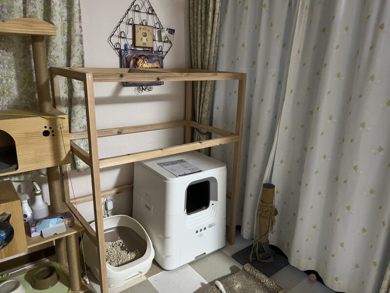 先日、自動トイレを使い始めた時に、置き場所がなかったので、ほぼ使っていなかったケージを撤去しました。